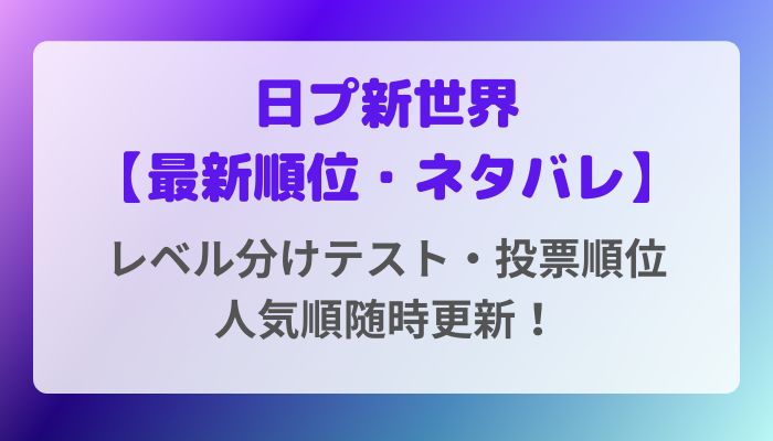 日プ新世界【最新順位】1話〜最終回まで全話ネタバレ♦️レベル分けテスト・投票順位・人気順随時更新!