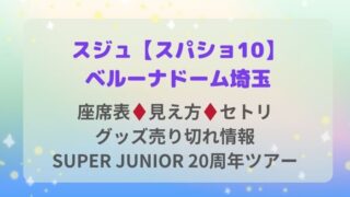 ライブ スジュ【スパショ10】ベルーナドーム埼玉の座席表♦️セトリ♦️グッズ売り切れ情報!SUPER JUNIOR20周年ツアー SUPER JUNIOR スジュのスパショ10『SUPER JUNIOR 20th Anniversary TOUR <SUPER SHOW 10> in JAPAN』ベルーナドーム埼玉公演の情報をまとめています。スジュ【スパショ10】ベル... 2026.03.04 ライブ
