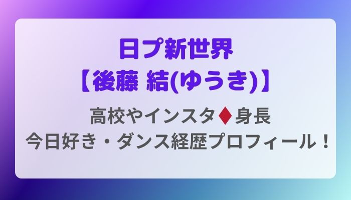 今回は、日プ新世界参加メンバーの後藤結くんの高校や身長といった基本プロフィールから、インスタ情報、さらに「今日好き」出演歴やこれまでのダンス経歴までをまとめてご紹介しました。