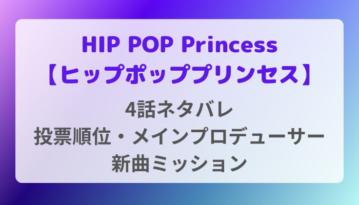 今回は、そんな『HIP POP Princess (ヒップホッププリンセス)』の4話ネタバレについて紹介します!