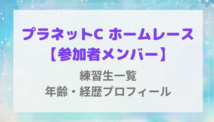 今回は、そんな『PLANET C:HOME RACE (プラネットC:ホームレース)』に参加する練習生18名をアルファベット順で紹介します!