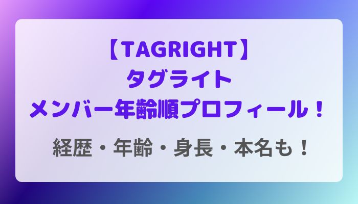 今回は、『TAGRIGHT 挫折を重ねた男達の最後の挑戦』でデビューが決定したメンバーのプロフィールを年齢順に紹介しました。